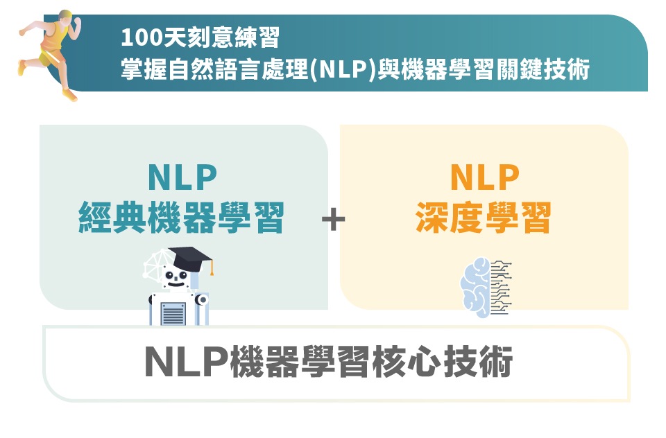 NLP自然語言機器學習馬拉松是一個結合自學、專家協助及社群討論的AI自學挑戰活動,目標是利用 100 天的時間讓學員掌握自然語言與機器學習/深度學習的關鍵知識點和實務技術應用。