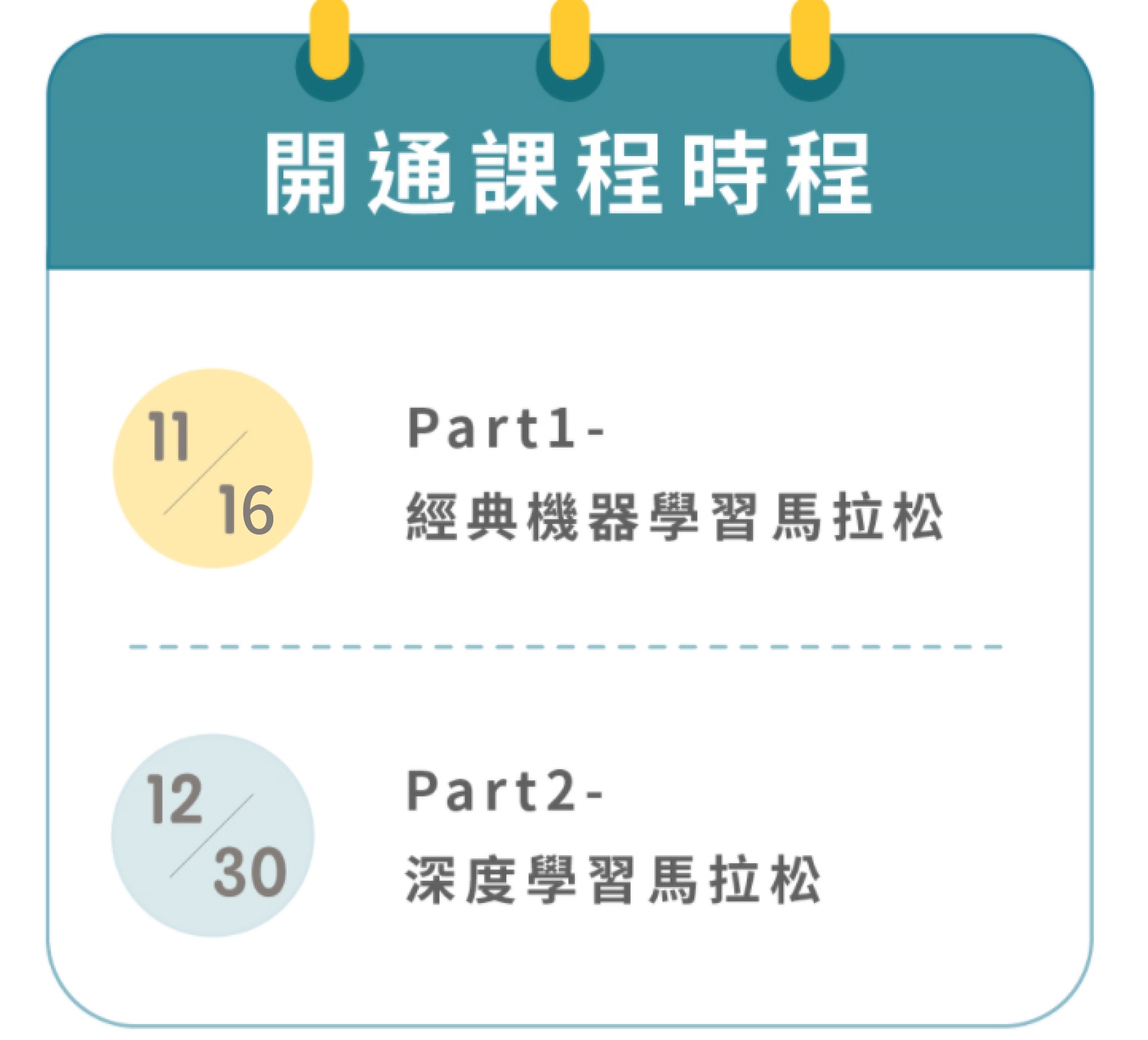 上述時間為課程釋出時間,課程釋放後學員可隨時報名參加,無需等待其他學員一同開跑。