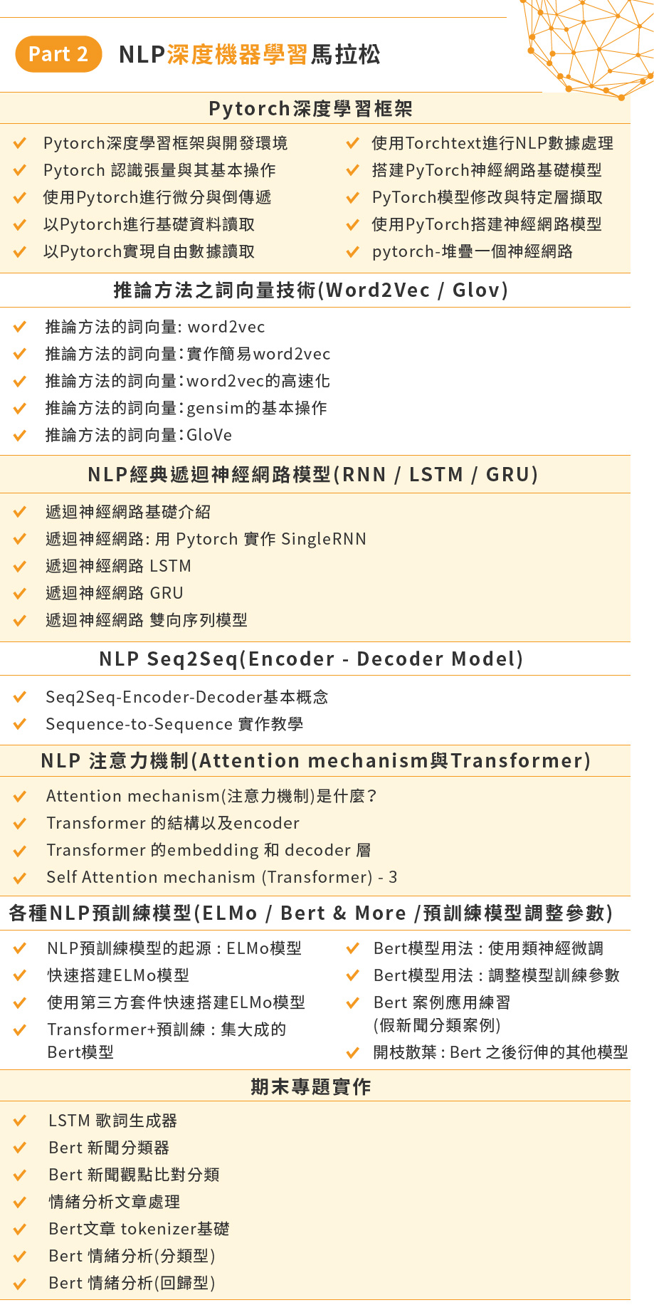 - Part 2 :進入 NLP 應用於深度學習之核心知識點