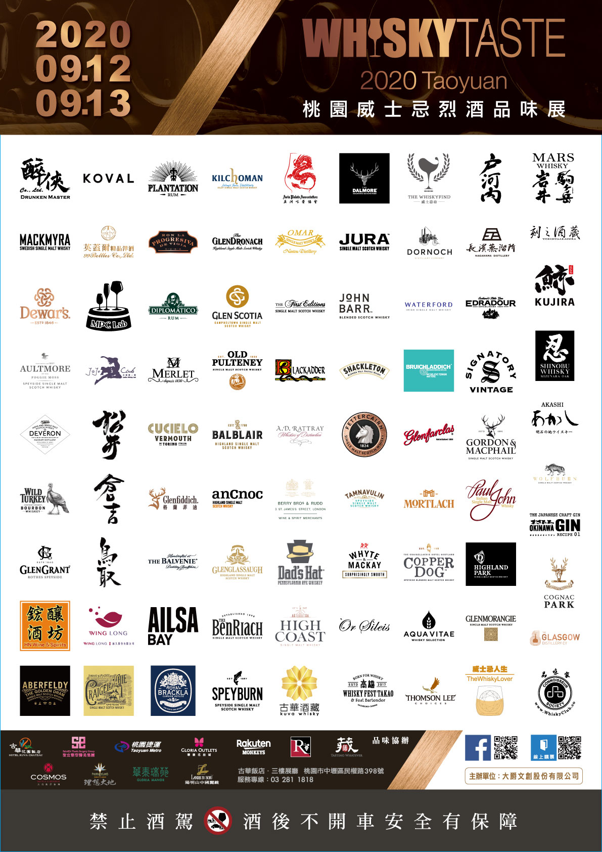2020是個讓大家煎熬的一年,所幸在困頓之中我們也漸漸看到了露出的曙光。打起精神、挽起袖子,還是要振奮起來喝一杯!在大環境逐步踏上正軌,生活作息也開始慢慢回歸到過往的日子,策展夥伴們經過認真的思考!決定在準備時間有限的情況下延續WHISKY TASTE熱情品飲的傳統。“2020桃園威士忌品味展”我們需要更多的協辦夥伴與同志,望請各位先進多多支持, 並給于鼓勵指導,再次感謝!