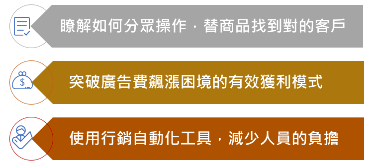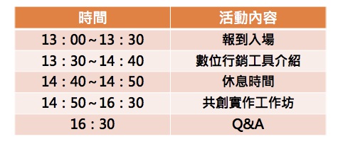 - 為了讓與會者更能充分參與數位行銷課程,本次活動有人數限制且採事先網路報名,不開放現場報名。