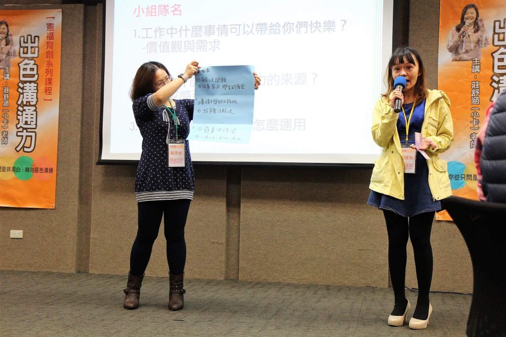 由憲福育創主辦「出色溝通力」課程,課程內容主軸以Colors性格工具,套入知己知彼百戰百勝:認識自己、觀察他人、換擋演練作為課程重點。