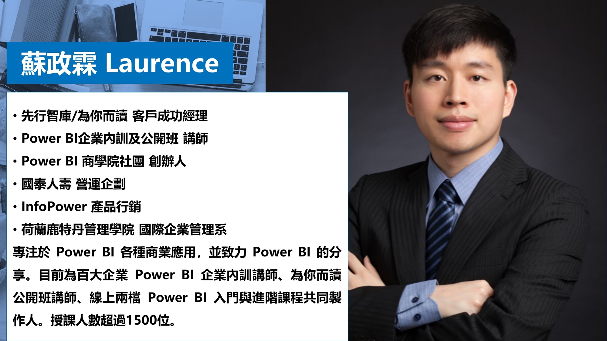 本課程由為你而讀資深客戶成功經理Laurence(Power BI 商學院-創辦人)授課,將結合數位資訊、商業管理與金融財務3種領域的專業知識,透過學習 Power BI數據分析工具,迅速掌握國外商業分析的思維邏輯,讓你立即把此分析能力應用在實務工作上,以提升你的職場競爭力!