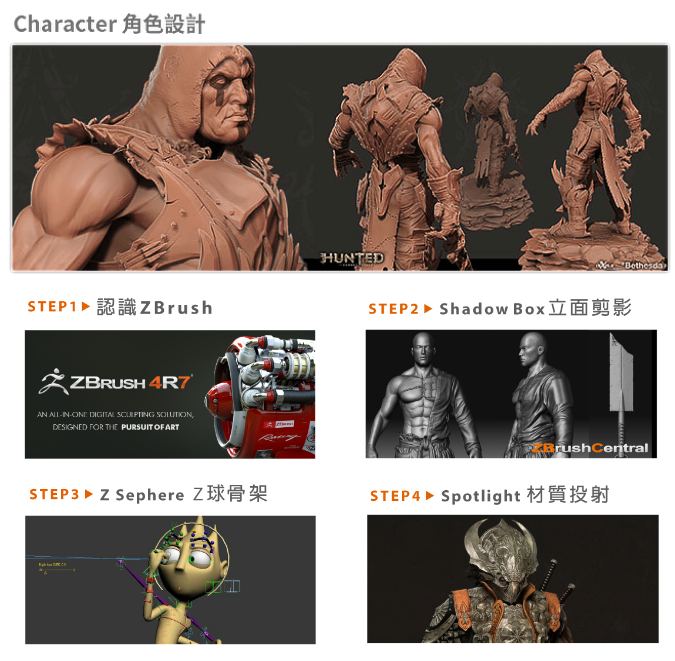 本課程從動畫前置設計開始,學習利用直覺的3D雕塑工具創造角色,