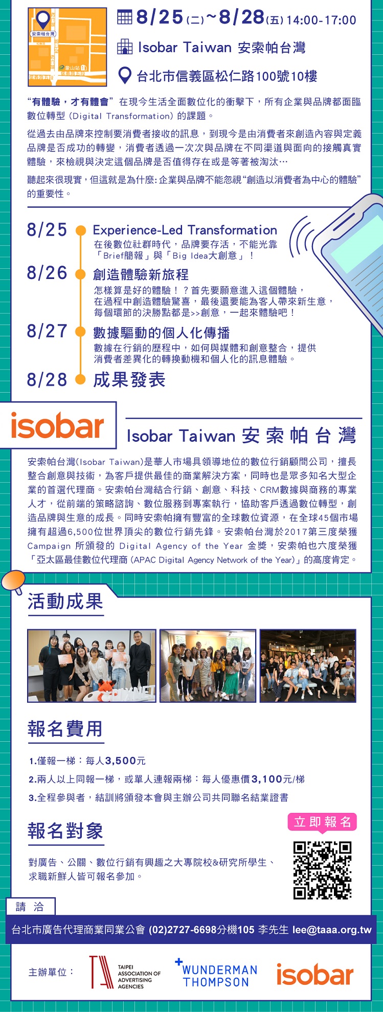 3.凡全程參與,將頒發台北市廣告公會與授課公司聯名結業證書。