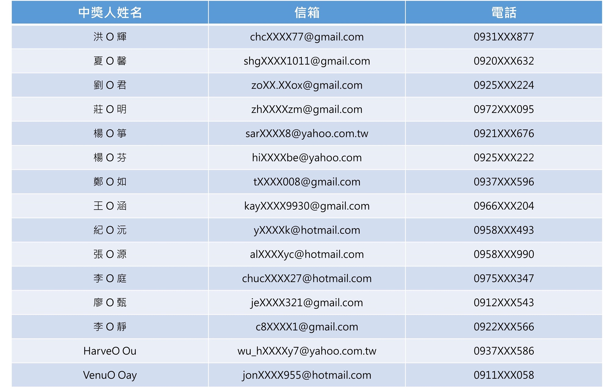 2.本次活動中獎通知信將會透過信箱寄發,若中獎者未提供資料或提供不實資料,導致無法通知中獎而影響領獎時程,將須自行負責,本活動不會再進行候補中獎者抽選。