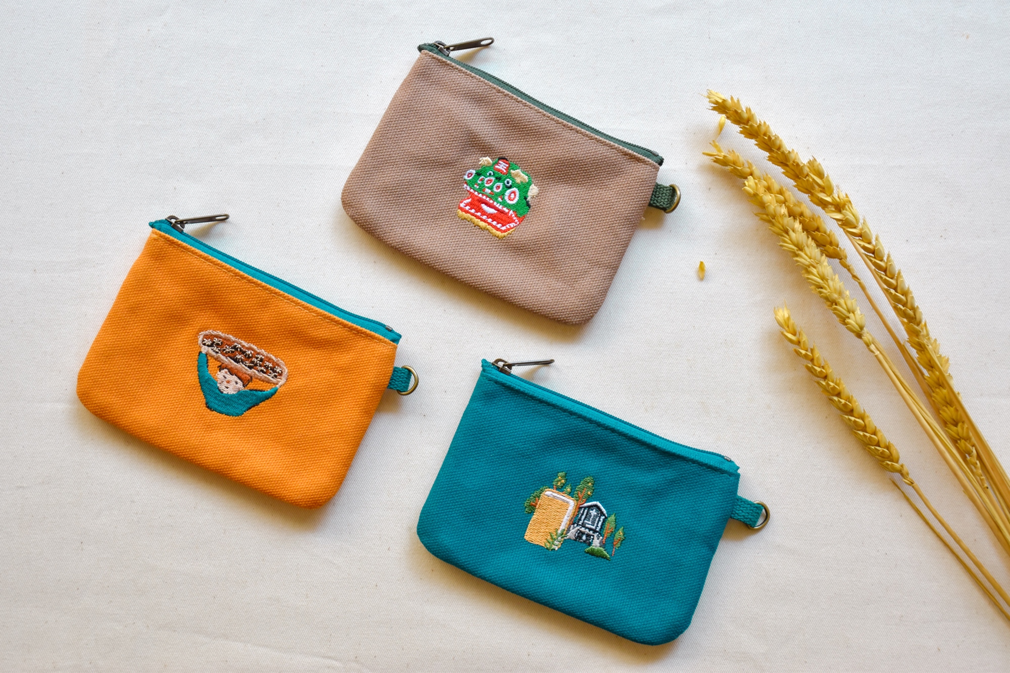 芎林客家武獅、北埔酸柑茶、老湖口天主堂,零錢包以精緻電繡和繽紛色彩呈現新竹縣在地文化特色。內有隔層,可容納數張卡片。