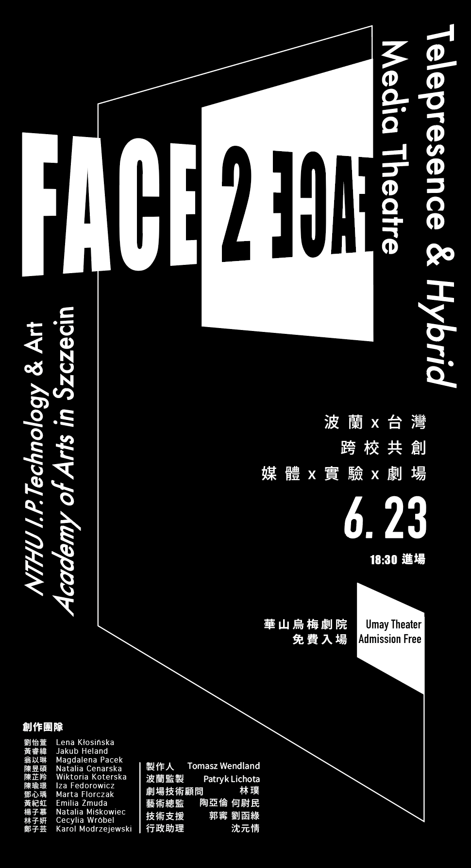 本劇場,旨在實驗不同媒體(Media)與介面(Surface)之間的交互作用。一群來自波蘭與台灣的藝術學院學生,各懷鬼胎攜手合作。兩地迥異的文化背景,在這場席捲全球的共感命題裡,摸索現實與虛擬的幻像交實、臨在場域與網路的空間交隔、人與人之間數位化的人際網絡的多層切面。一場時而喧囂,時而寂靜;咆哮亦喃喃自語,光與影在空間的靜謐流動,噪聲覆蓋的隱形互語。在這隔離至上的孤獨時代裡,五場跨國論辯,凝於共識。