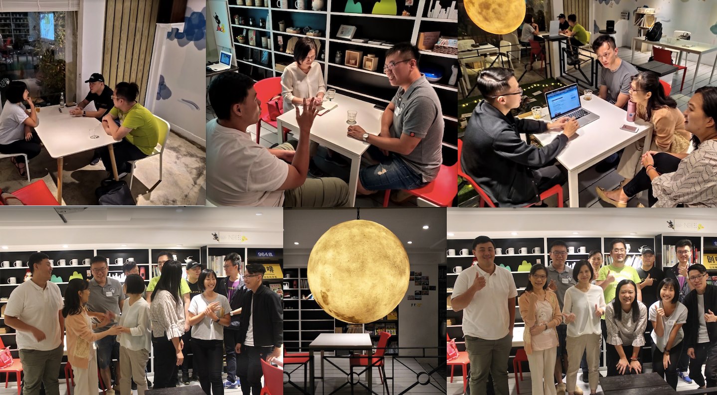 回到真實世界,這段時間,不分男女老少、職業類別,討論有興趣的主題,可能是旅行、環保、商業、創作等,一起腦力激盪。