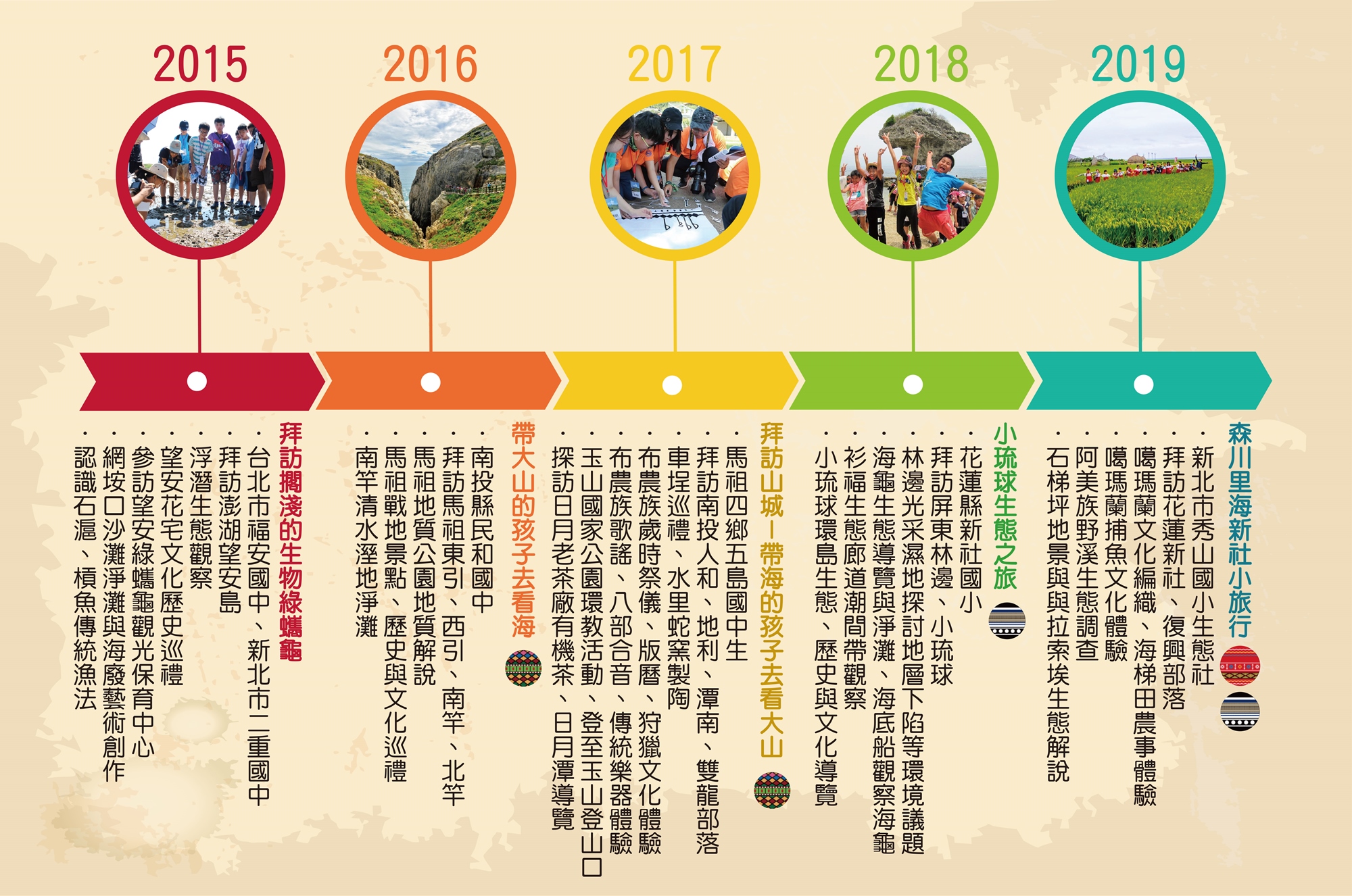 從2015年起,每年我們都會規劃一場共學之旅-「愛山愛海公益共學遊」,與來自不同城鄉環境的學校師生,造訪寶島的另一處,透過共學,體驗不同的在地環境與人文特色。