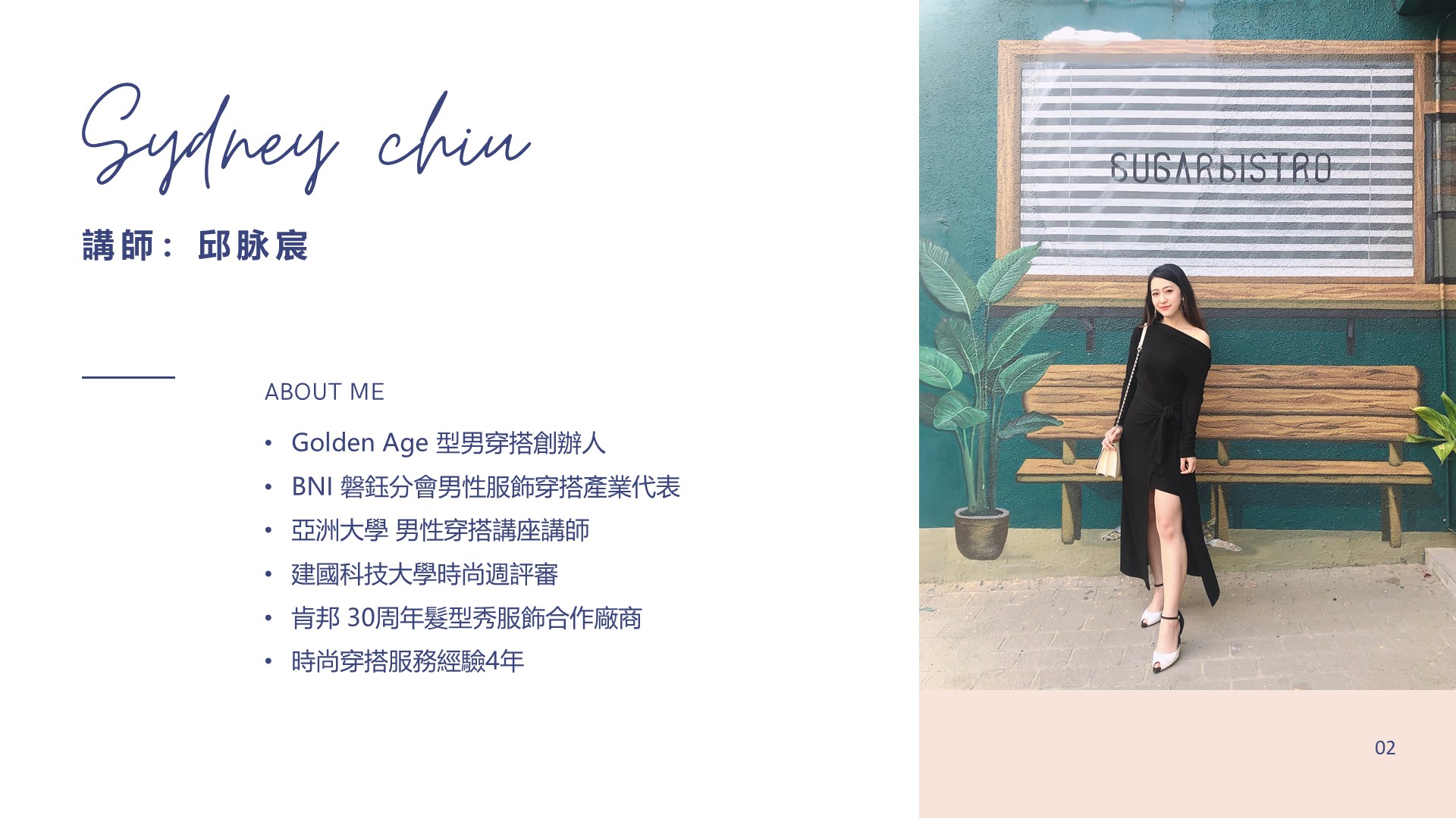 講師:邱脉宸 從事男性穿搭顧問多年,成功協助多位男性在轉換人生階段的過程中,獲得穿搭的升級技巧,輕鬆為自已的自信與魅力加分!