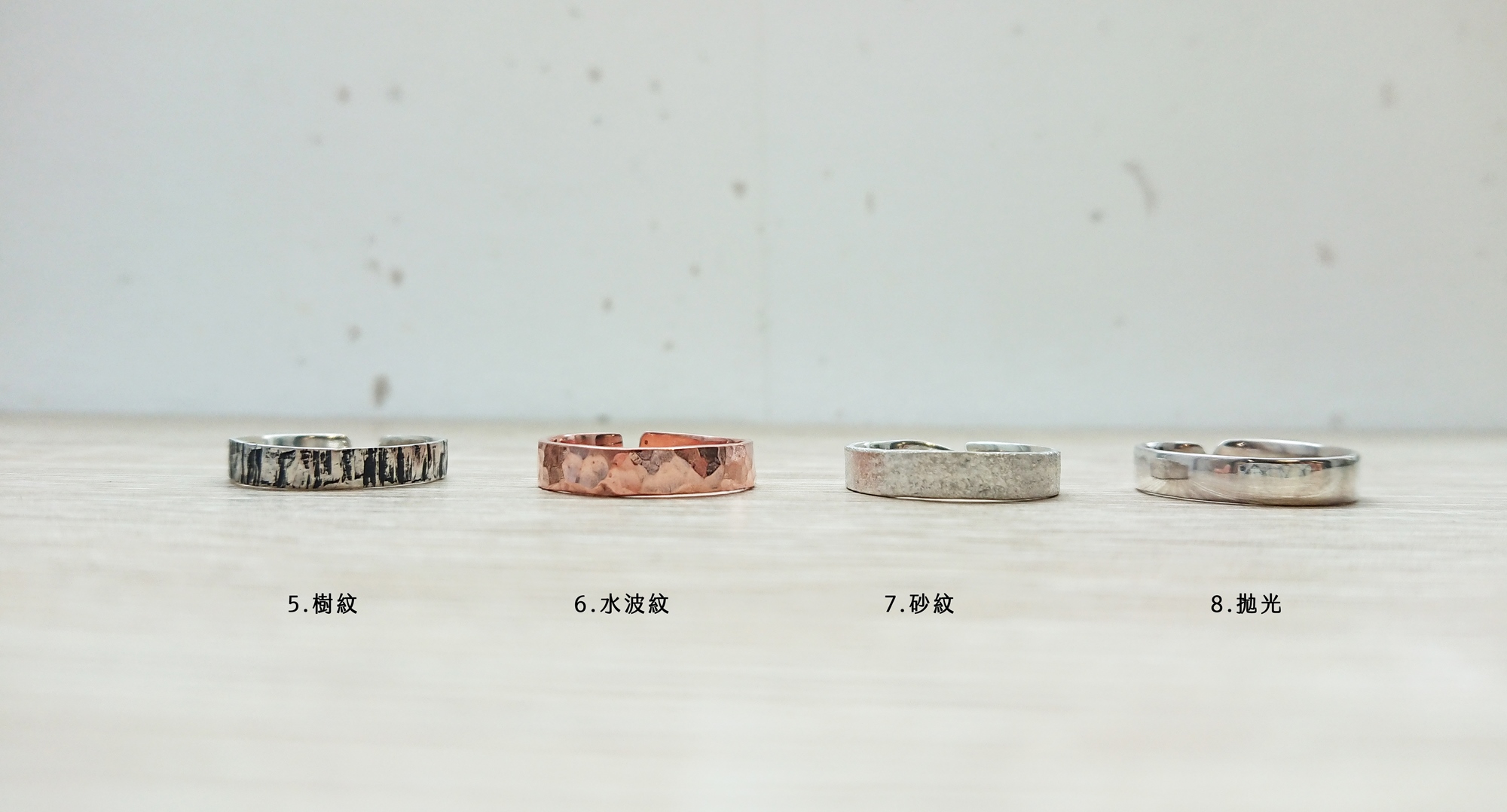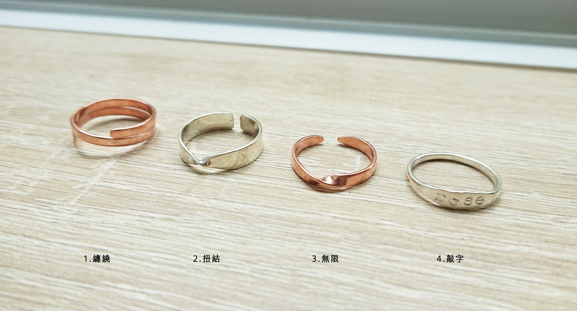 可挑選製作【敲擊質感戒】或【技法造型戒】,再加上3種收尾方式。(現場挑選即可)