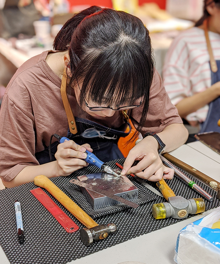 4. 依照挑選款式來製作,敲擊、鋸切扭轉成型。