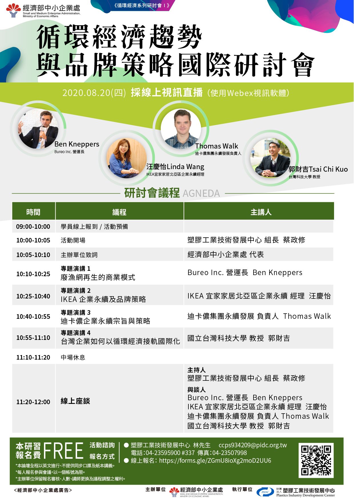 【報名費用與名額】全程活動免費,線上會議1,000人為限