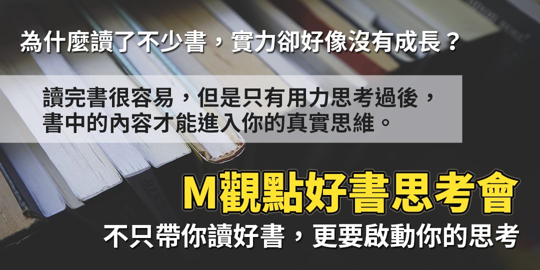 「M觀點好書思考會」是專門針對商管領域書籍的討論會。Miula以及邀請來的講師,會提取書中核心精華,佐以專業觀點,讓你能在90分鐘內,更有效率的思考你可以從這本書得到什麼。