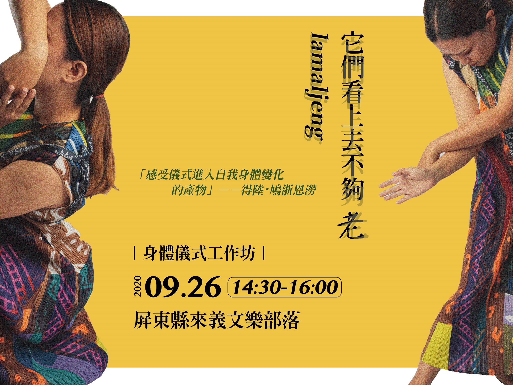 報名方式|ACCUPASS活動通網頁報名,請搜尋「Pulima藝術節策展計畫《lamaljeng它們看上去不夠老》」>點選「立即報名」>報名「身體儀式工作坊」。