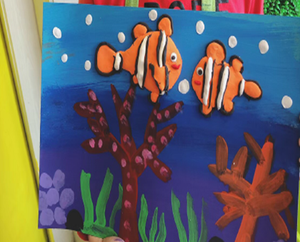 繪製自己的海底世界再使用輕質土捏出自己的小丑魚。