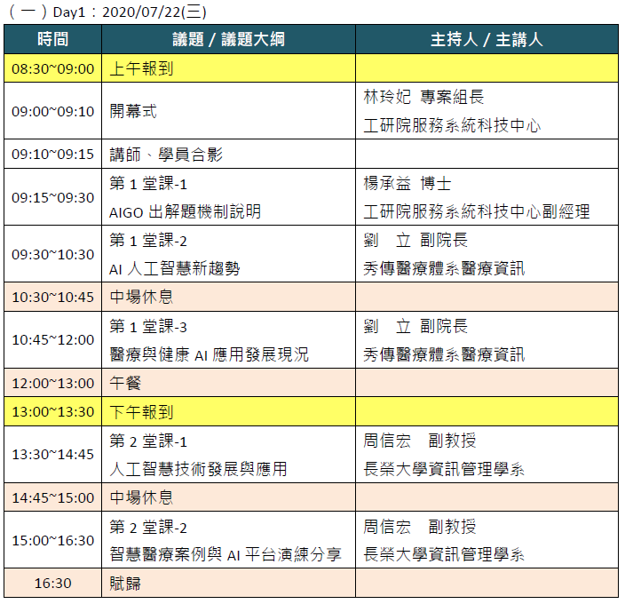 - 時間:2020/07/22(三)及2020/07/23(四)