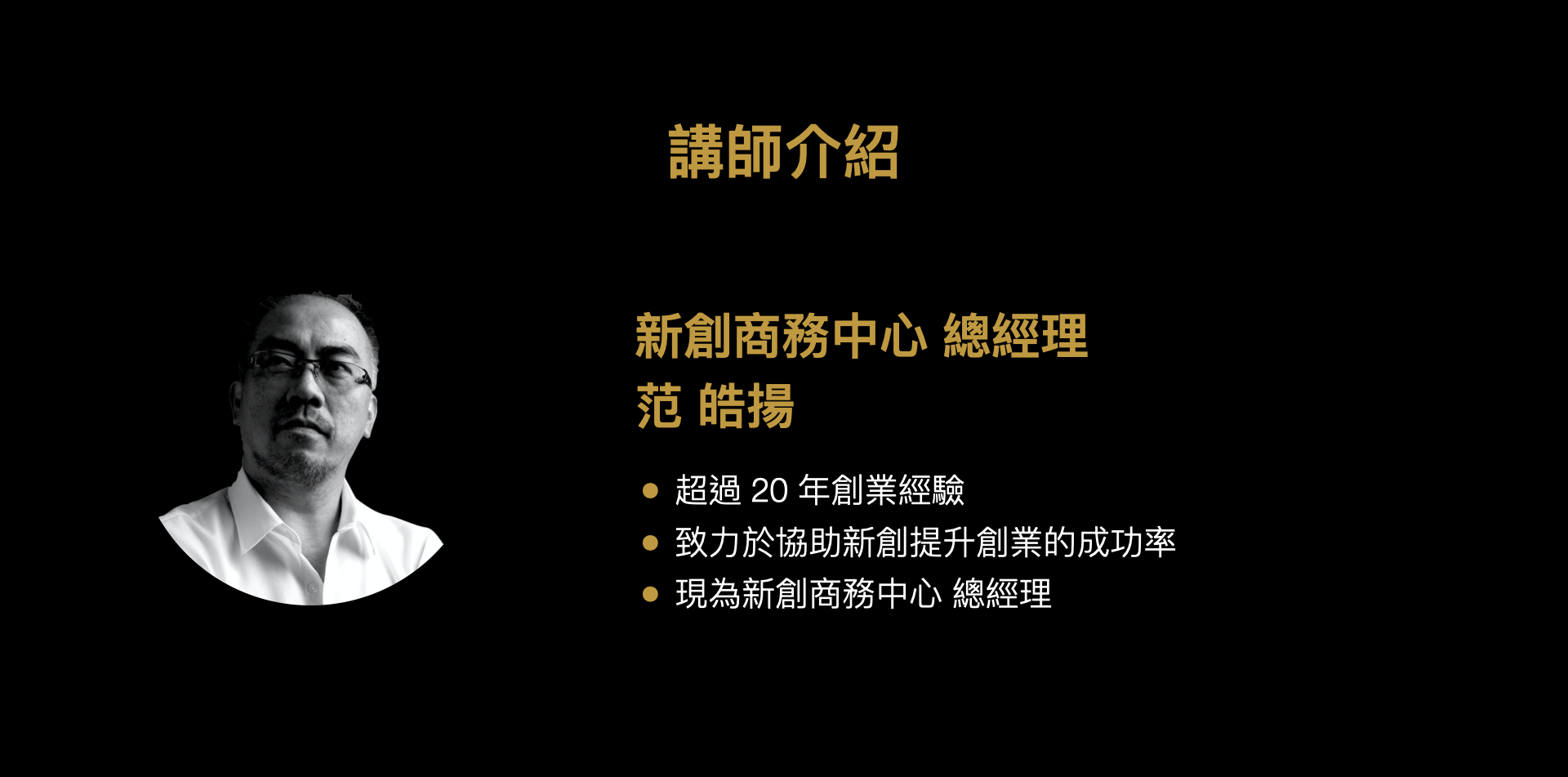 講師 范皓揚擁有超過 20 年的創業經驗,事業有成後決定回過頭來協助新創創業成功,因此成立了新創商務中心,回顧 20 年來的創業經驗,范總發現在創業的過程中,最重要的是為自己塑造一個良好的環境,如何在創業這種高壓的狀態下,讓自己隨時保持前進的動力?由經驗豐富的范總告訴您😍😍😍 :