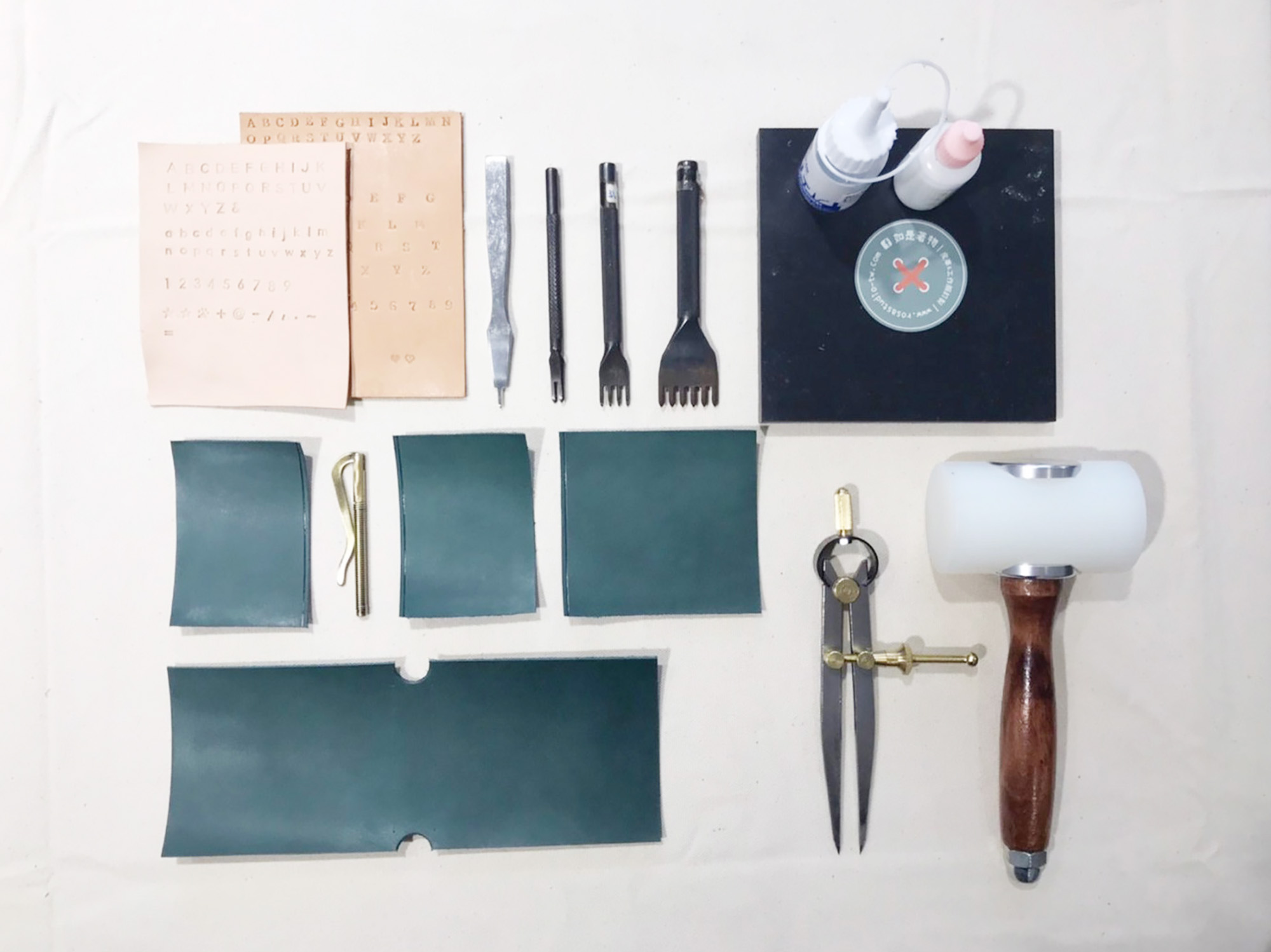 皮革顏色需訂購時決定,縫線顏色可上課時現場搭配,課前請預先想好敲字內容。