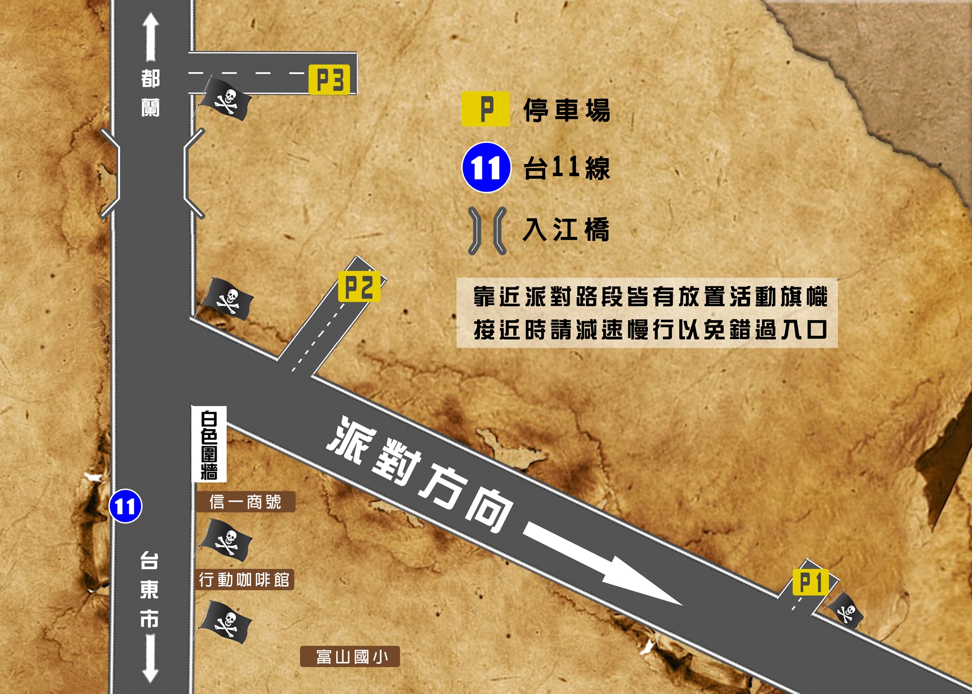 過杉原海水浴場後於富山村 活動旗幟左轉