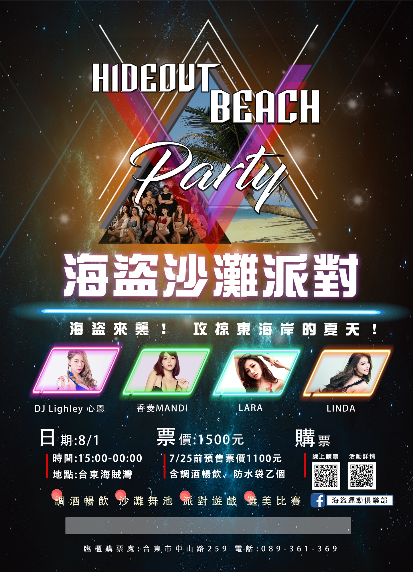(門票內容 : 海灘派對調酒暢飲、贈送海盜防水包乙個)