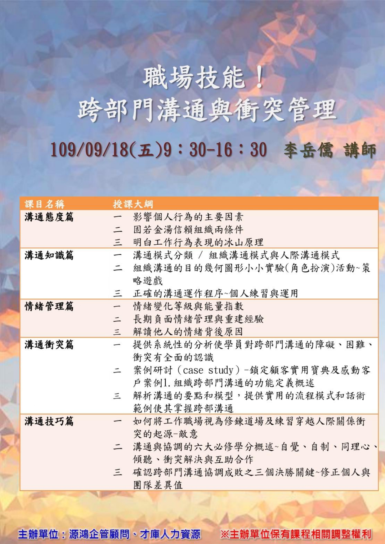 【上課時間】:109/09/18(五) AM09:30-PM16:30 (共計:6小時)