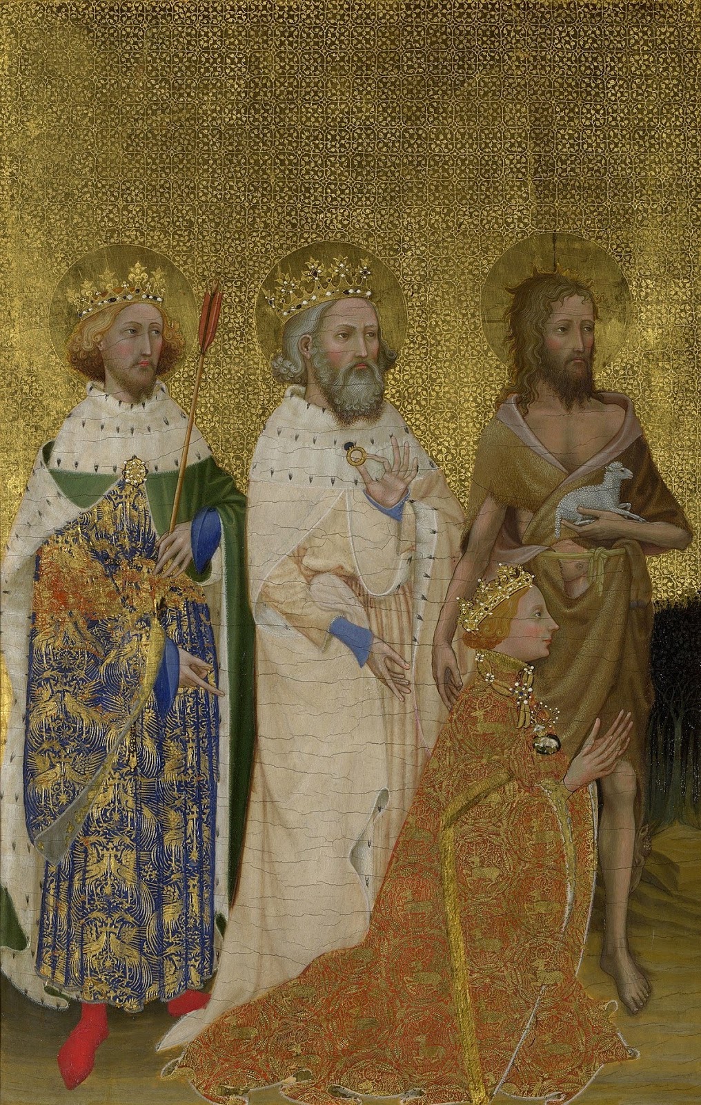 威爾頓雙聯畫是為了14世紀英王理查二世所作,為中世紀少數哥德藝術作品,其創作者已不可考,畫面中敬跪著的即為理查二世。此幅作品為理查二世的御用之物,可隨身攜帶作為個人祈禱之用。