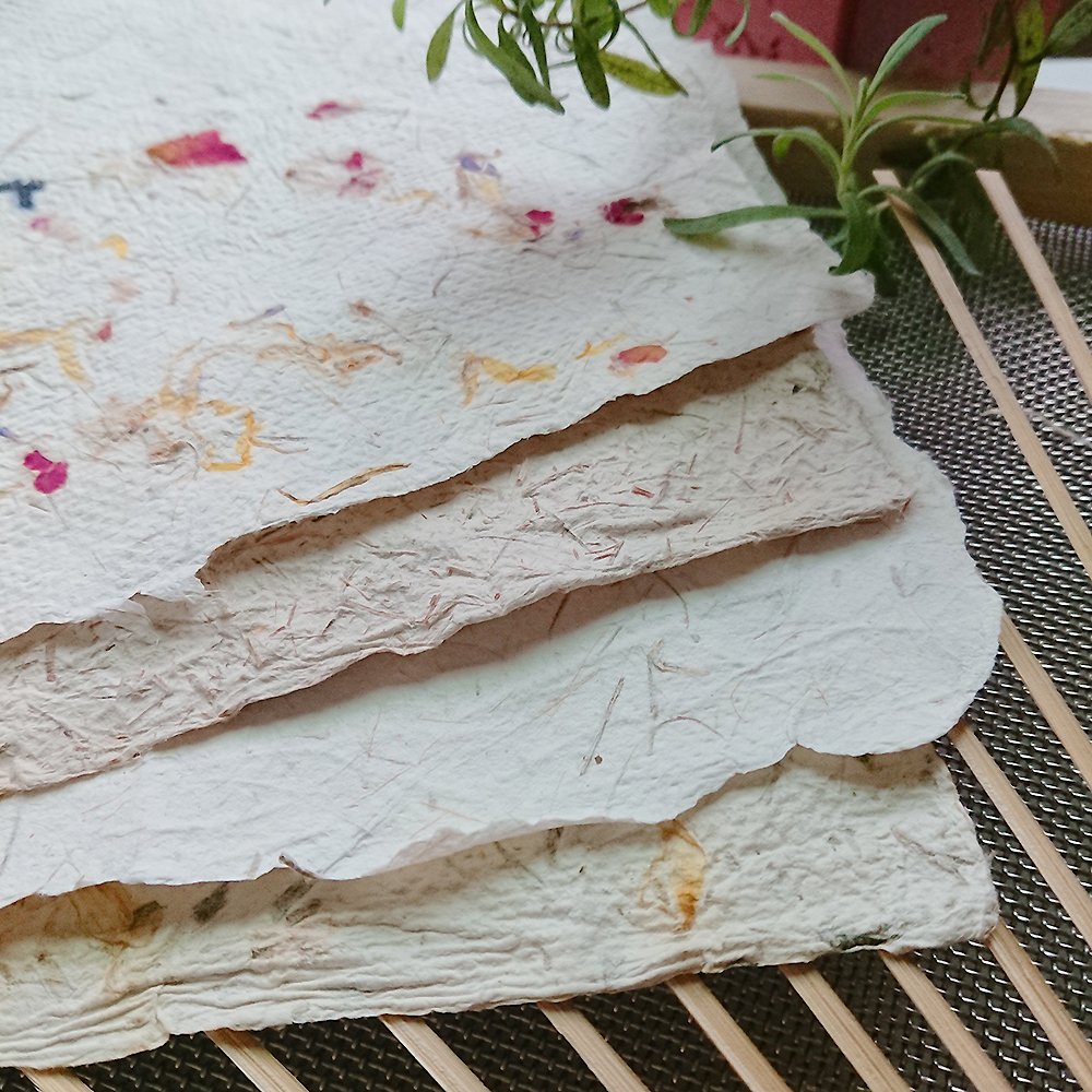 - 兩種不同厚薄透過篩紙技巧,取得10張趣味與美術具備的美麗手紙。