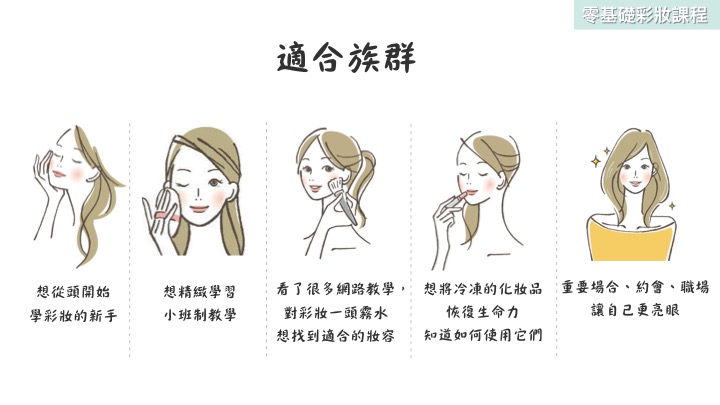 (請攜帶眼部彩妝品,眼影、眼線筆/液/膠、睫毛膏、眼影刷/棒,如沒以上的東西也不用特別去購買,老師可先借用)
