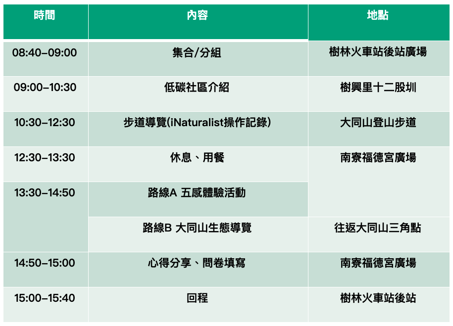 2020/8/29(六)活動將順延至2020/9/6(日),11/21(六)活動將順延至2021/1/24(日)舉辦。 - b. 樹林區-大同山步道
