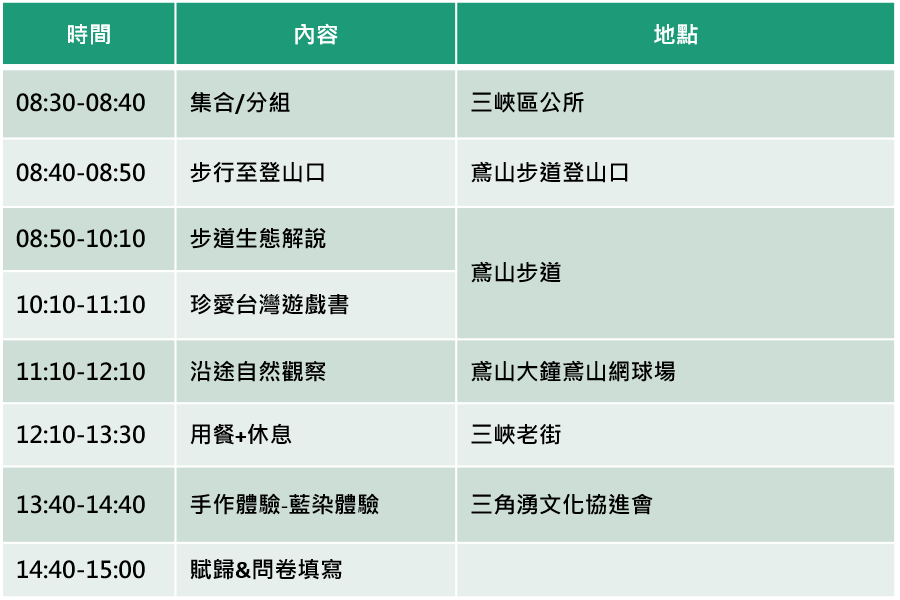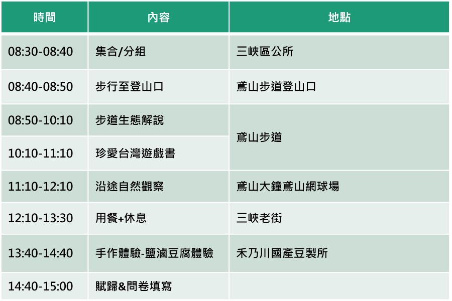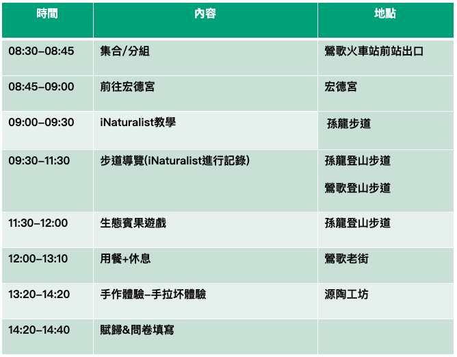 - 所有行程需大家自行攜帶午餐(提醒請勿攜帶過量,並建議攜帶耐放食物)