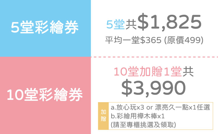 例:購買五堂券,畫第三次時想從$699款式中選擇,則可以現場加價$200升級。