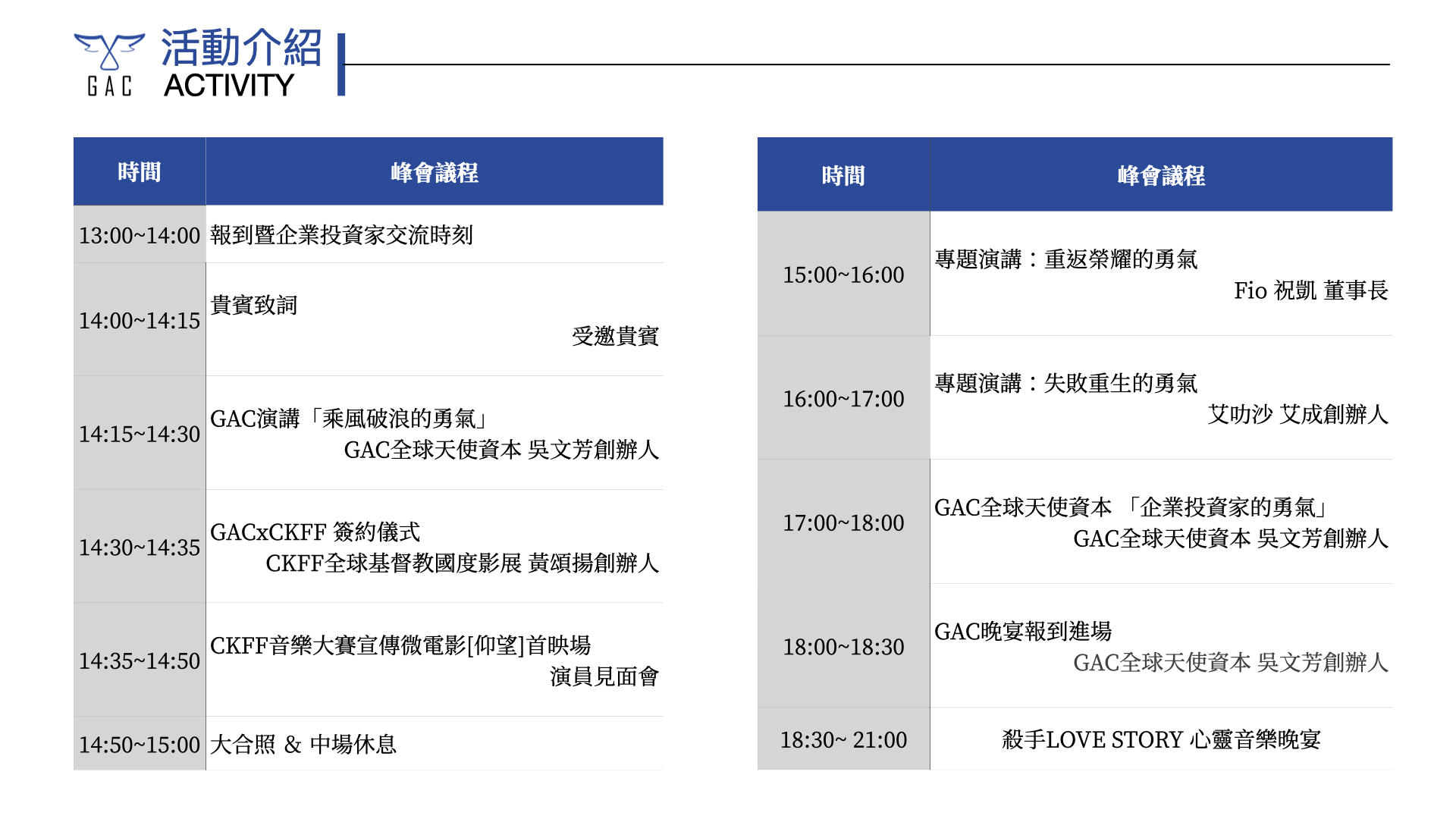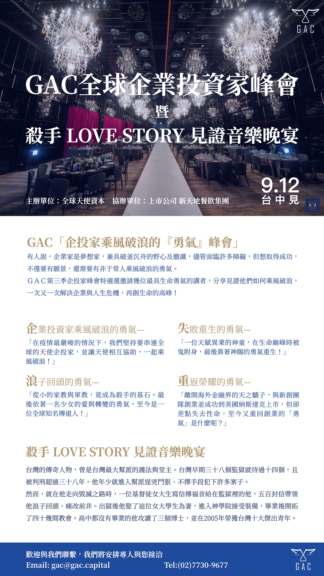 GAC第三季企投家峰會特遴選邀請幾位最具生命勇氣的講者,分享見證他們如何乘風破浪,一次又一次解決企業與人生危機,再創生命的高峰!