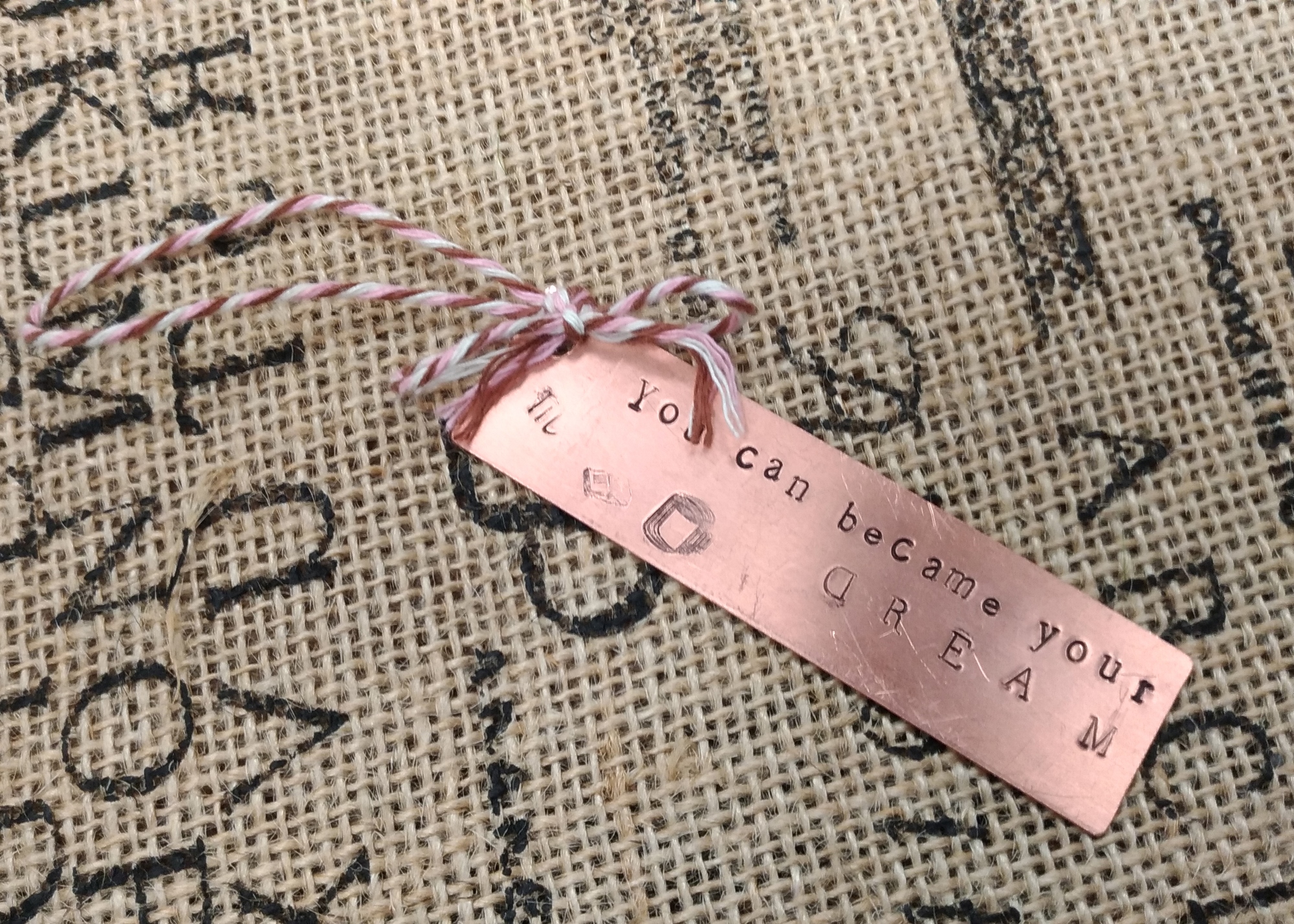 【金工。手感敲字黃銅書籤】
