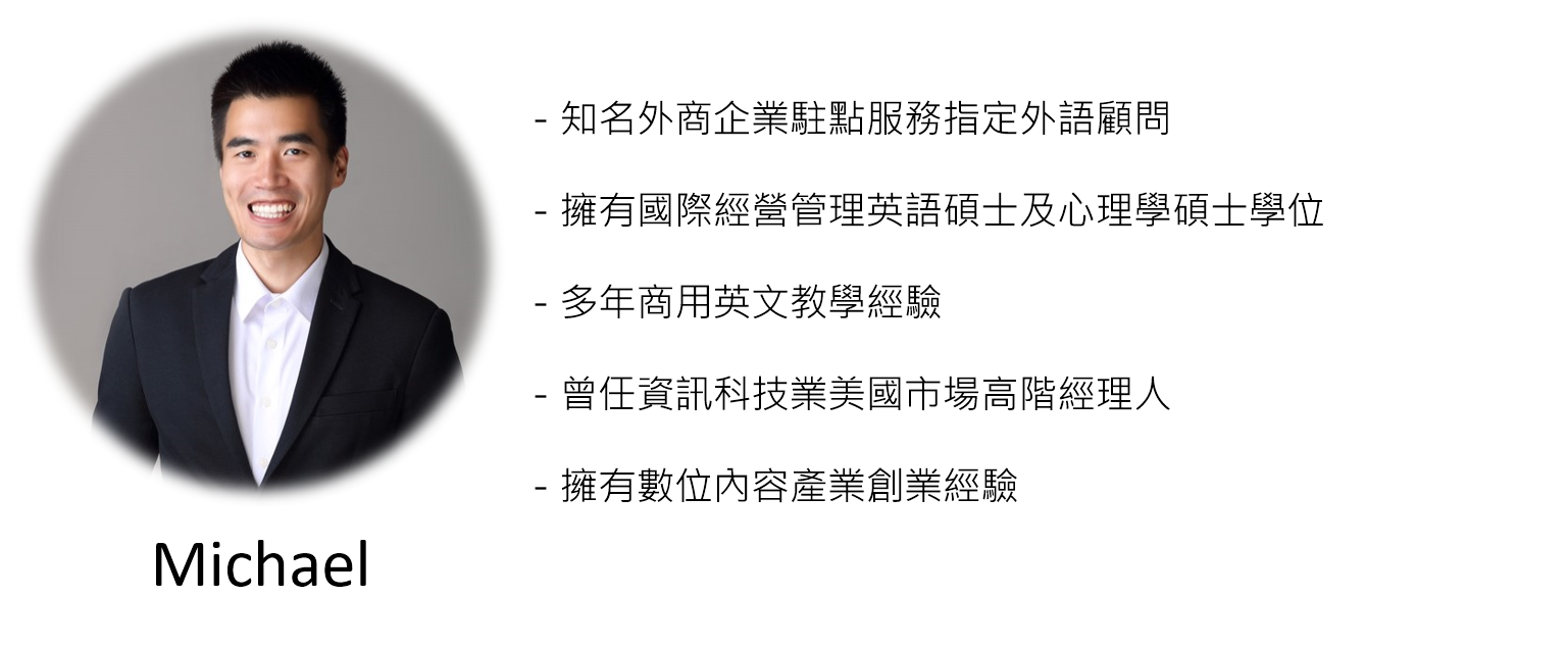 你不需要擔心這堂課是否只是多教你幾種句型,具有多年商用英文教學經驗的 CLN 專業顧問 Michael 老師本身就擁有數位內容產業創業經驗,對商務英文常見的提案更是非常熟悉。在這堂課中, Michael 老師將手把手帶你從肢體語言的視覺呈現、起承轉合的語調以及實際的簡報實戰演練,帶你輕鬆掌握簡報中的各個環節。