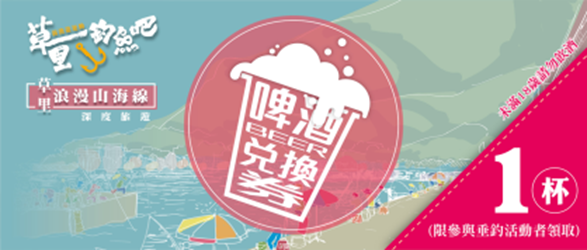 -至報到區領取釣魚用具(1組釣竿、魚餌 、 魚桶、 2個輕便椅、號碼牌、垂釣飲食券、啤酒兌換券)