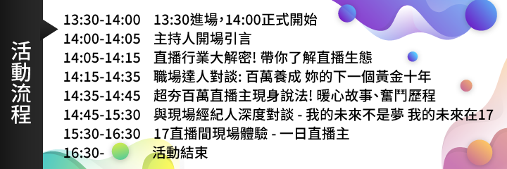 15:00 ~ 16:30 與經紀對談/直播體驗