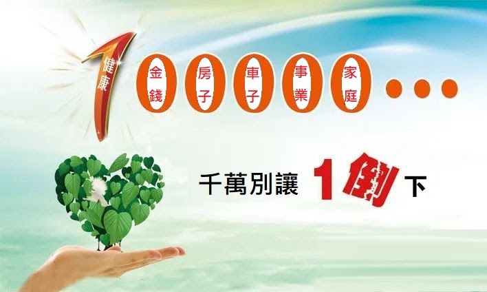 【什麼是你人生的第一順位?】健康的身體是1,金錢、房子、車子、事業、家庭是0,沒有1,再多的0人生也是枉然。