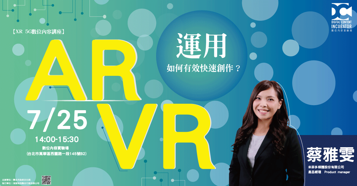 5G時代來臨,跨越各大產業產生新革命,如何讓5G與AR、VR相輔相成,本次講座邀請米菲多媒體股份有限公司-產品經理 蔡雅雯,分享AR、VR的趨勢,以及如何應用在各產業,深入生活,提高創作的效率.
