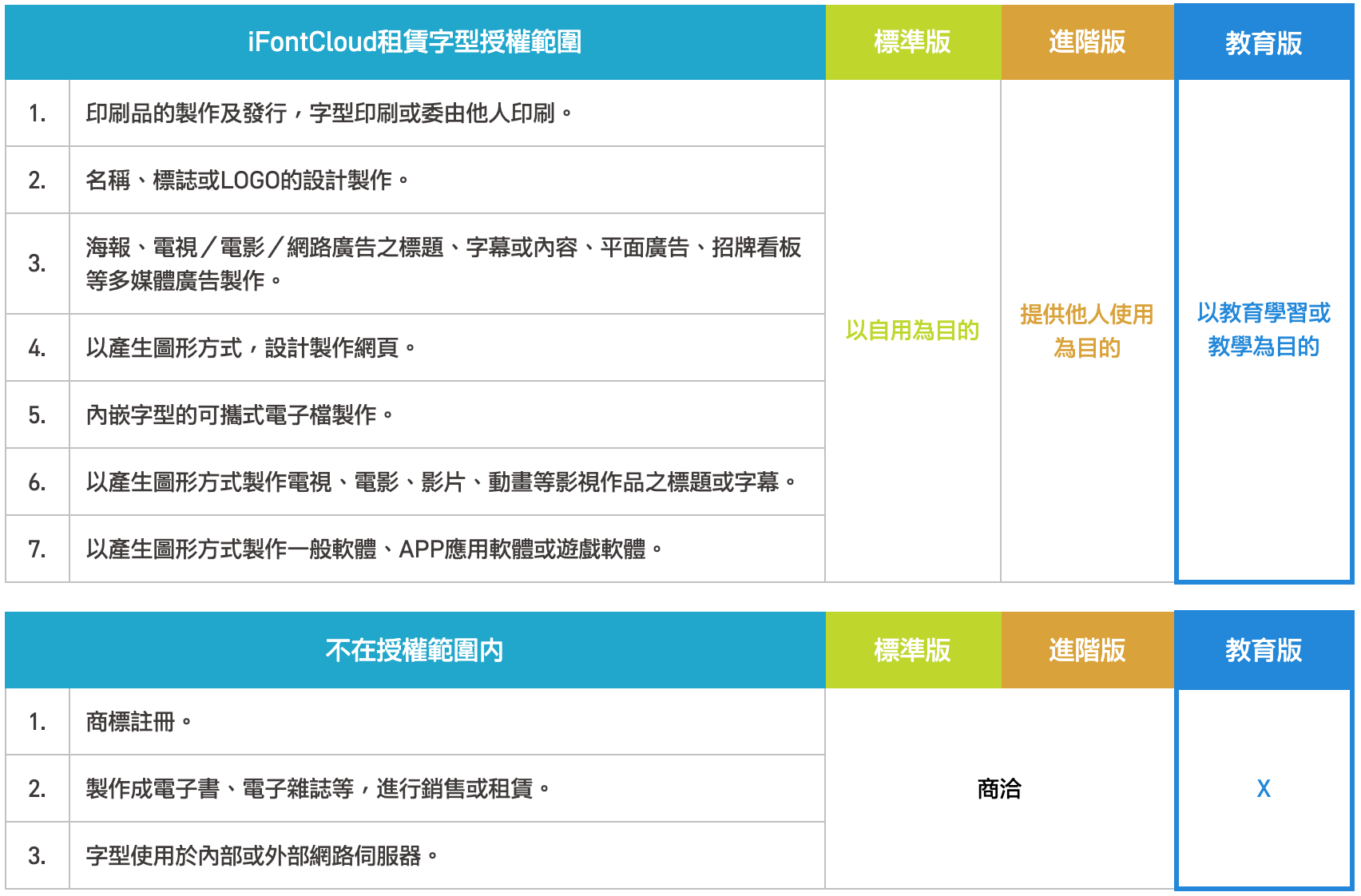 2. 一般票券:內容包含講座以及可全額折抵iFontCloud 文鼎雲字庫購買字體使用。