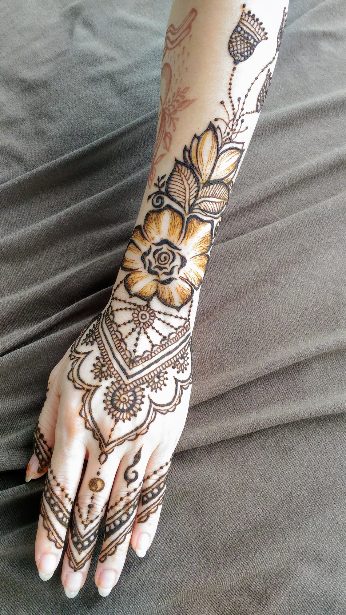 因為我本身也不是繪畫或是設計背景,最初只是自己動手畫了第一次後,就覺得Henna好特別,喜歡上愛上了Henna,所以在教學中,我不會採用一成不變的補習班式教學方式,畢竟每個人喜歡的圖案都不同,習慣的畫法也不同!所以我會從我自身的習得經驗,融合許多次教學中,學生與我的交流分享,透過我的方式來教學,傾囊相授,希望每個人都可以畫出自己喜歡的樣子,感受Henna美麗多變自由的一面!