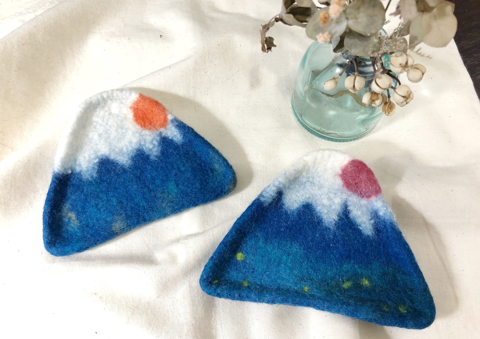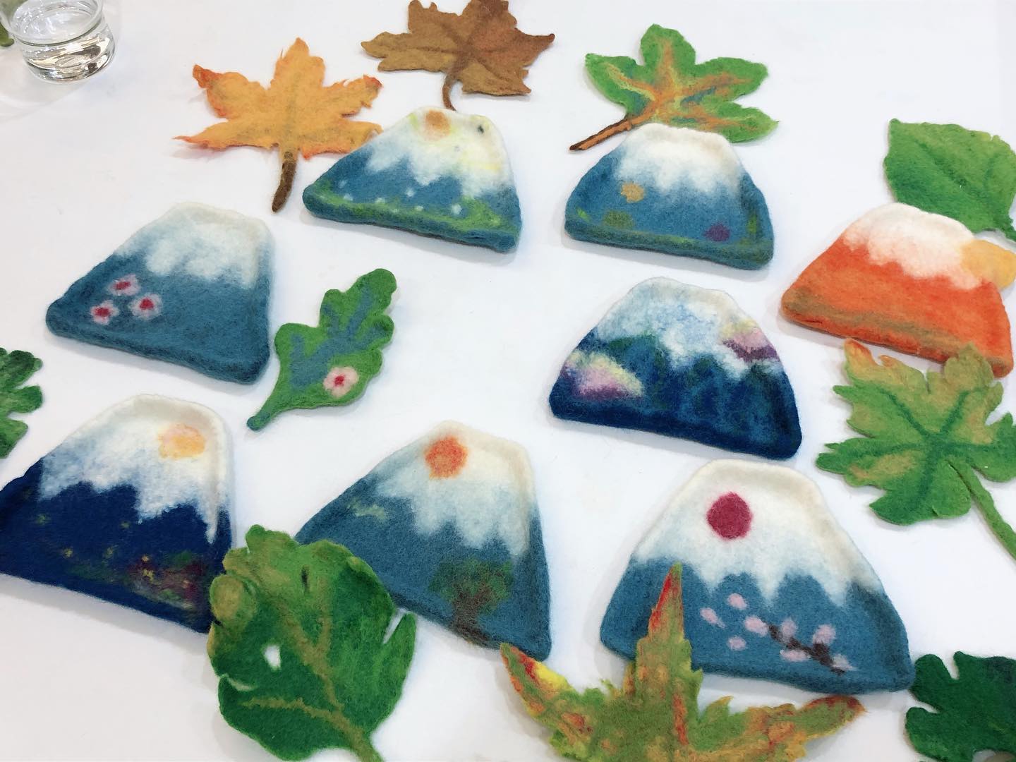 課程中將完成一個富士山杯墊/置物盤,和一片葉子書籤。