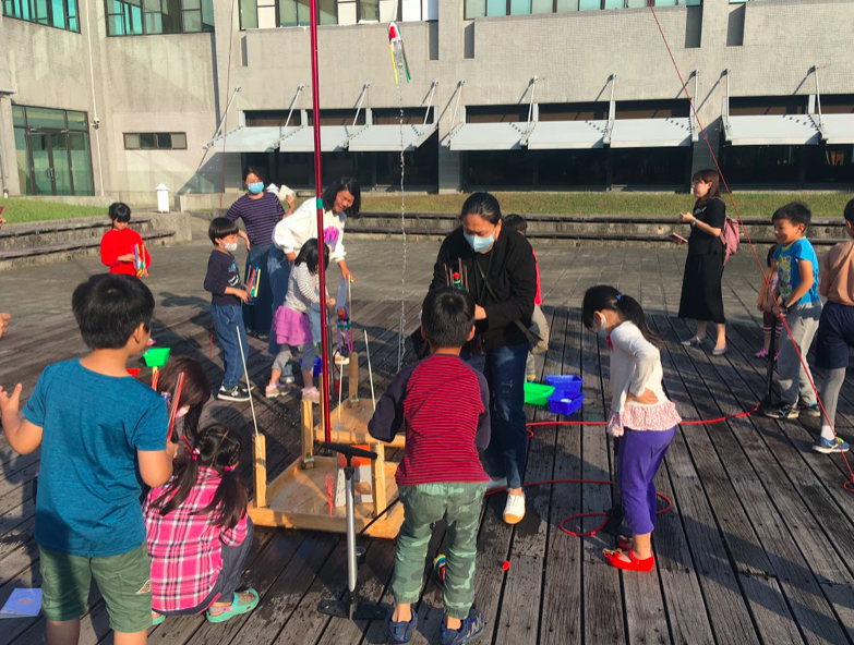 現場製作水火箭,進行飛行高度與水量實驗。