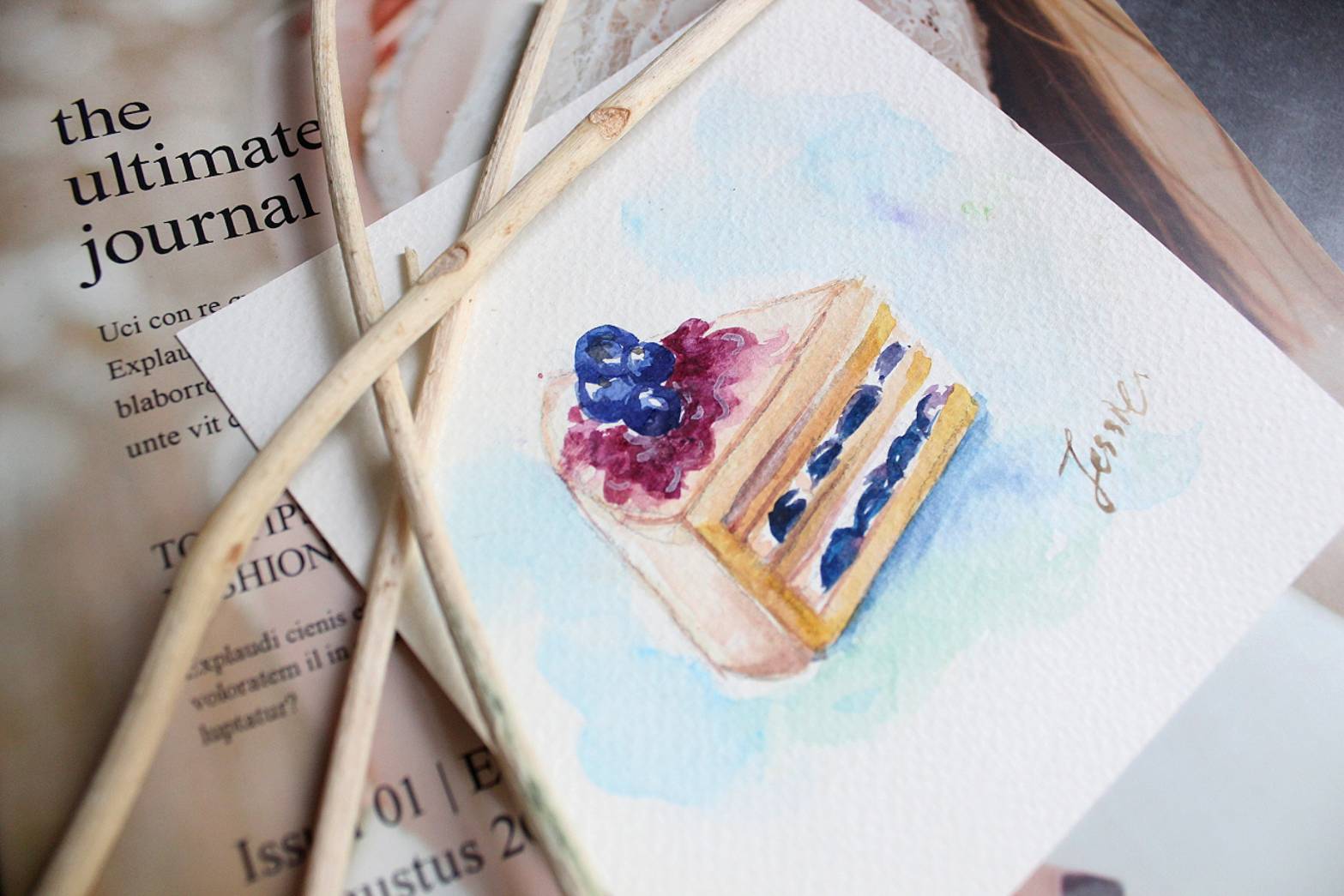 課程中,老師會細心的教你如何將甜點以簡化的線條來構圖,加上顏色的調配來去畫出甜點的美味,除了單純畫作外,也能夠加工成手帳小插圖或是小卡片來多元運用