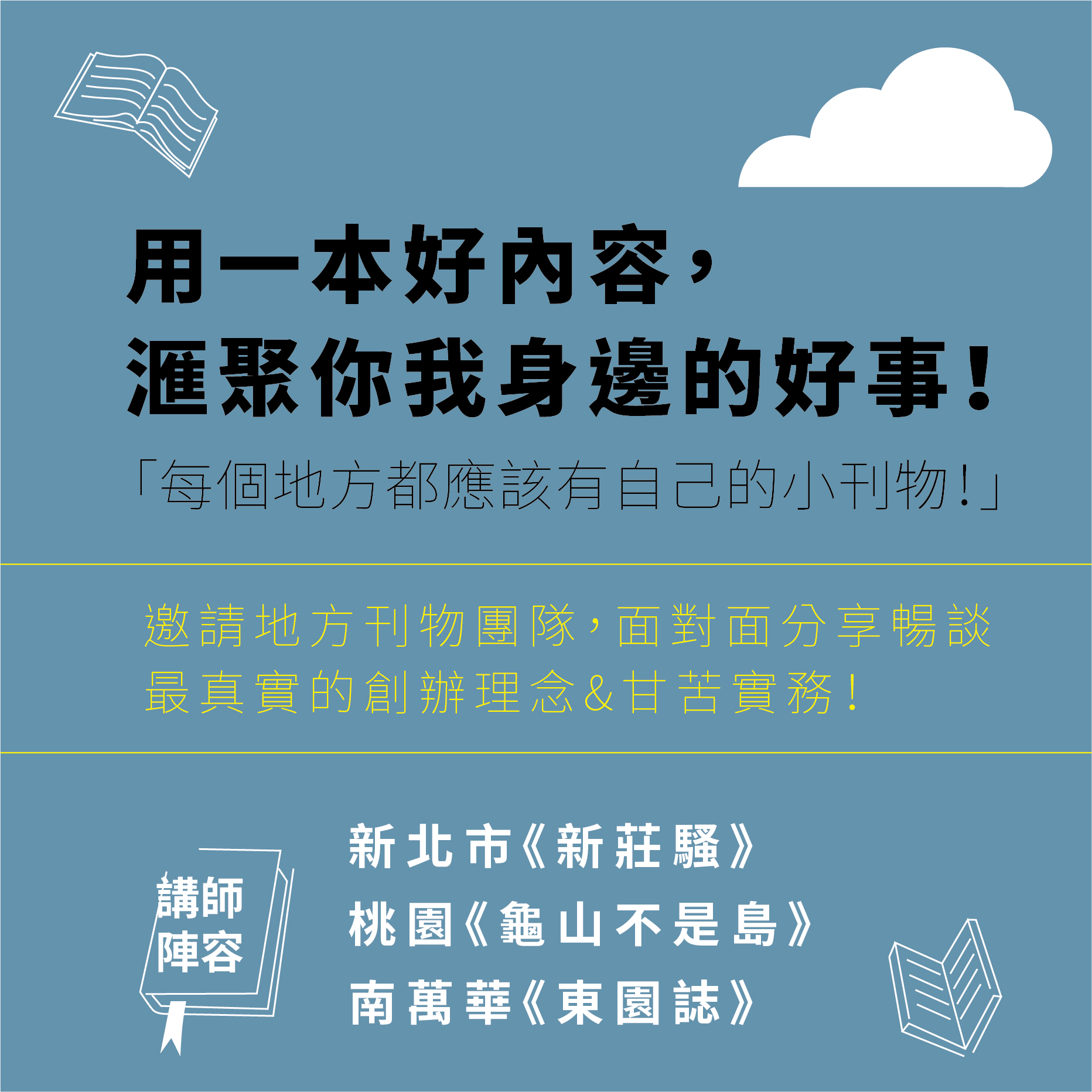 歡迎大家一起來面對面,了解創辦地方刊物的核心理念與甘苦實務吧!
