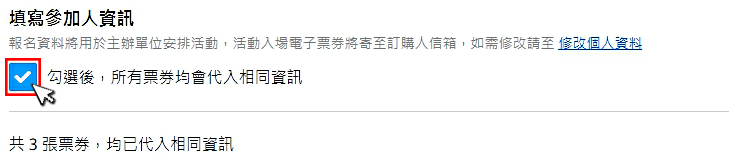 若有複選加購時,填寫參加人資訊,請先勾選下圖方框,可避免重覆填寫資訊。