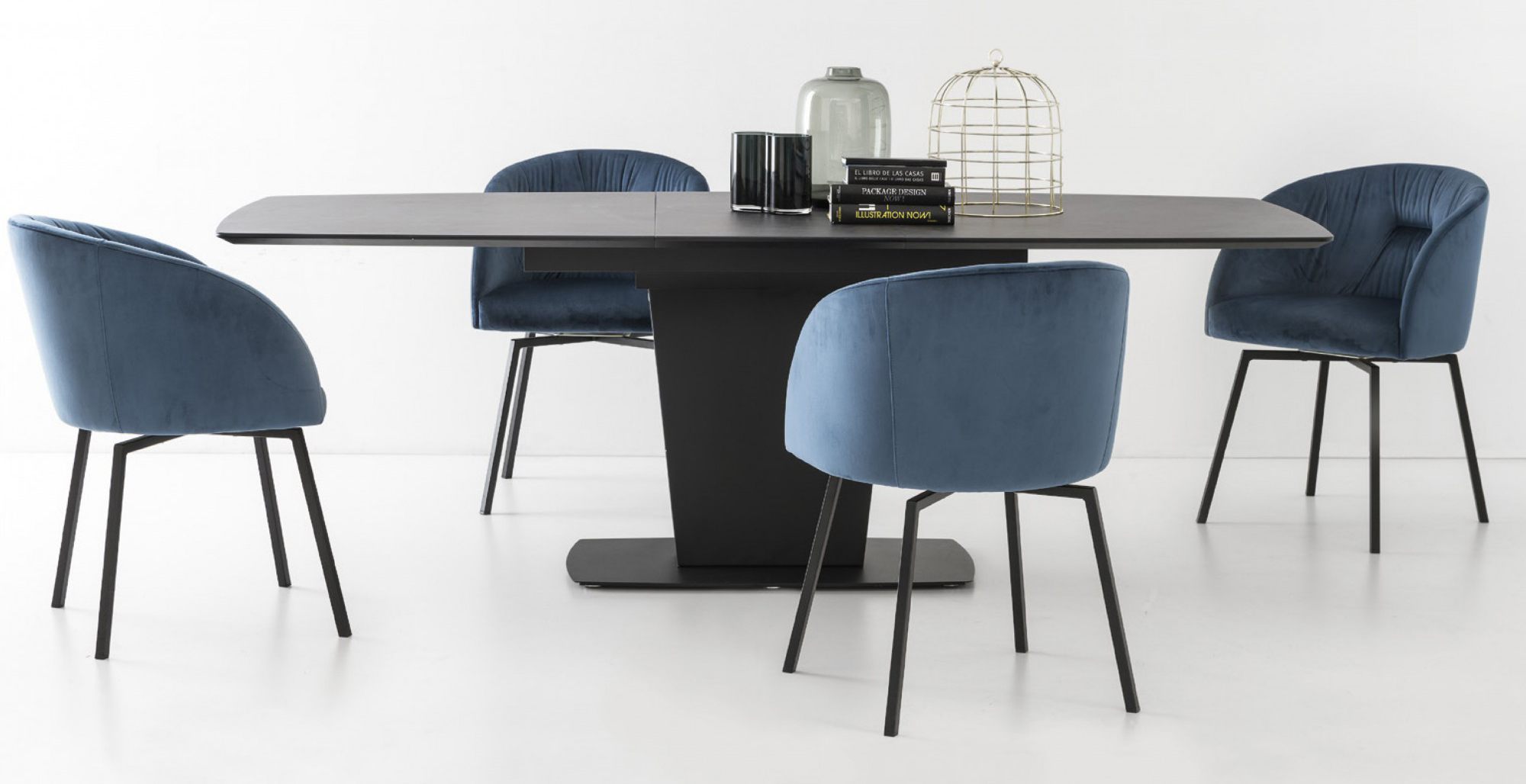 檯面經過特殊工藝將陶瓷板與強化玻璃結合,觸感溫潤細膩,具卓越耐刮、耐汙漬、耐溫度特性易於清理。當使用成員增加時,只要拉出中央內置延伸桌板,即刻騰出空間,輕鬆享受高品味的餐桌時光。