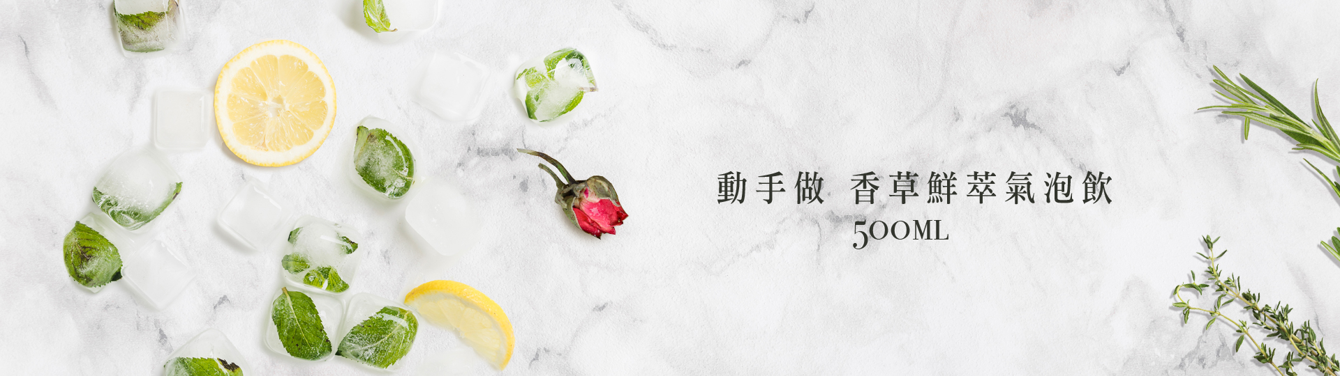 本次課程老師特別提供最新鮮自耕自種的新鮮香草,和大家分享如何為平日飲水增添趣味。將教學兩款不同香草鮮萃氣泡飲調製法,並與大家分享: