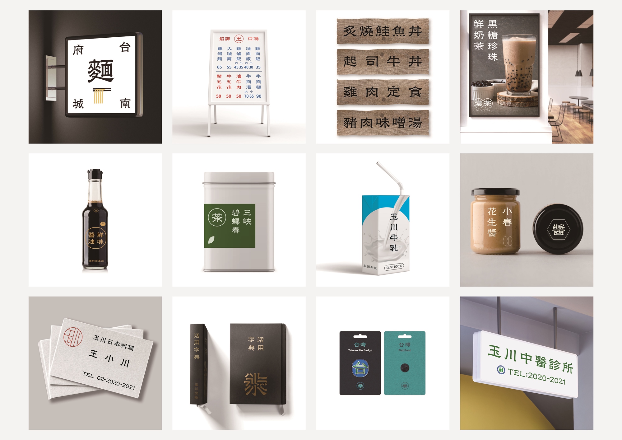 「拳體」在設計上針對筆畫粗細斟酌再三,經過調整後,這樣的字重不論大標、小標應用都能清晰辨識;甚至是簡單的段落排版也能有一定的可讀性。從小吃店招牌、菜單、日本料理、名片、海報、書籍、到飲品及食品包裝,甚至婚喪喜慶場合、旗幟標語、戲劇電影、動漫,「拳體」都能輕鬆應用。